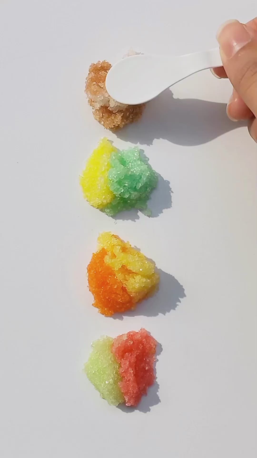- Activate your scrub by adding a teaspoon of water and mixing it.